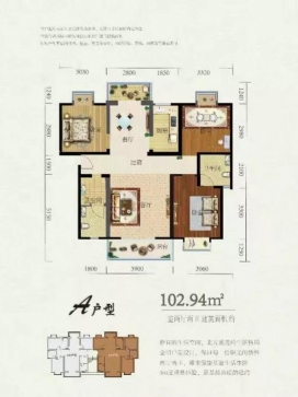 a户型三室两厅两卫建筑面积约102.94㎡